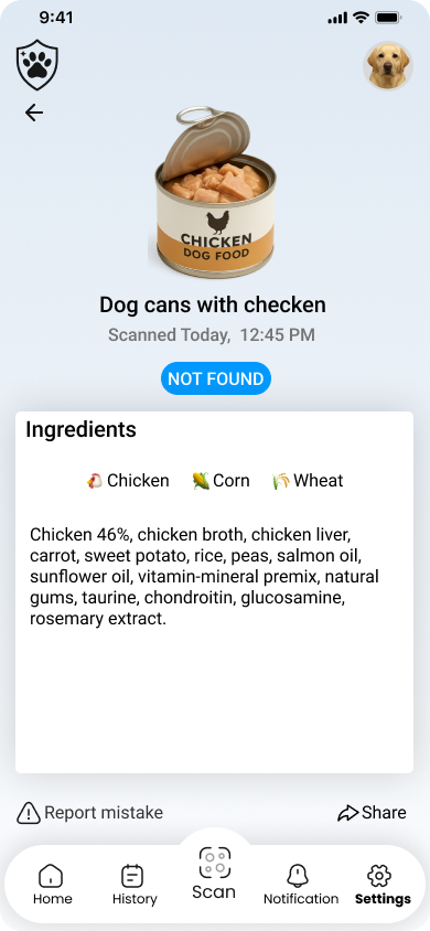 Instantly identify harmful ingredients based on your pet's allergies and sensitivities. Get alerts before you buy.