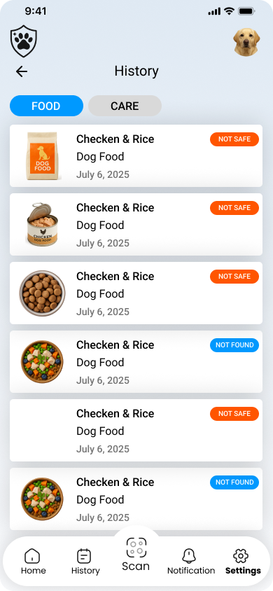 Scan any pet food or treat with your camera to instantly check ingredients and safety. Know what you're feeding your pet.